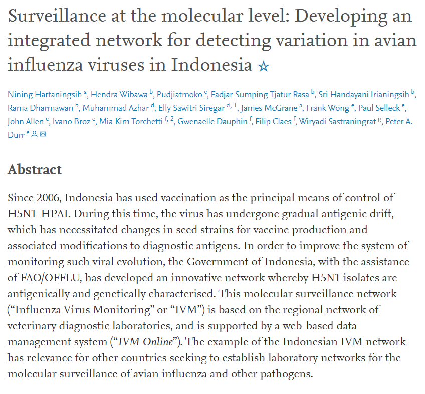 A web-based animal health laboratory network system in Indonesia that manages antigenic and genetic data of the circulating HPAI viruses in Indonesia.